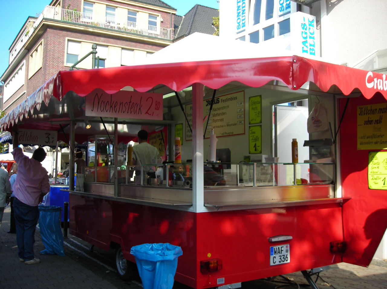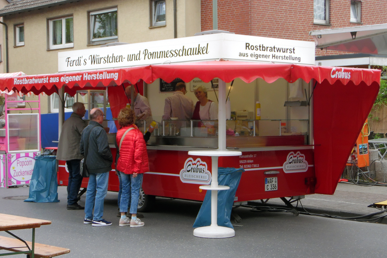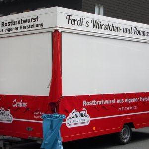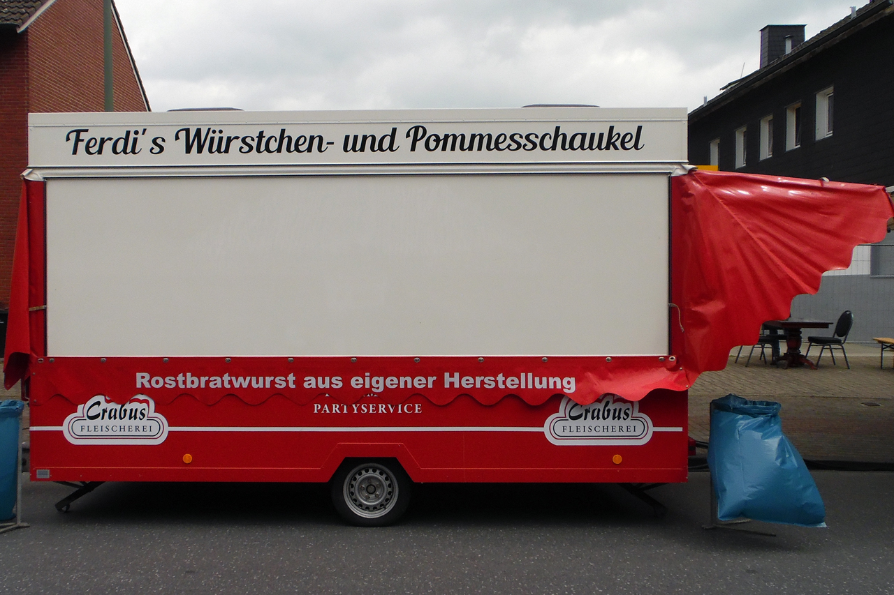 Stehtisch, Bierzeltgarnitur(Tisch und zwei Bänke), Gasgrill, Tischdecken,Imbisswagen (komplett eingerichtet) plus Endreinigung, Riesenpfanne.