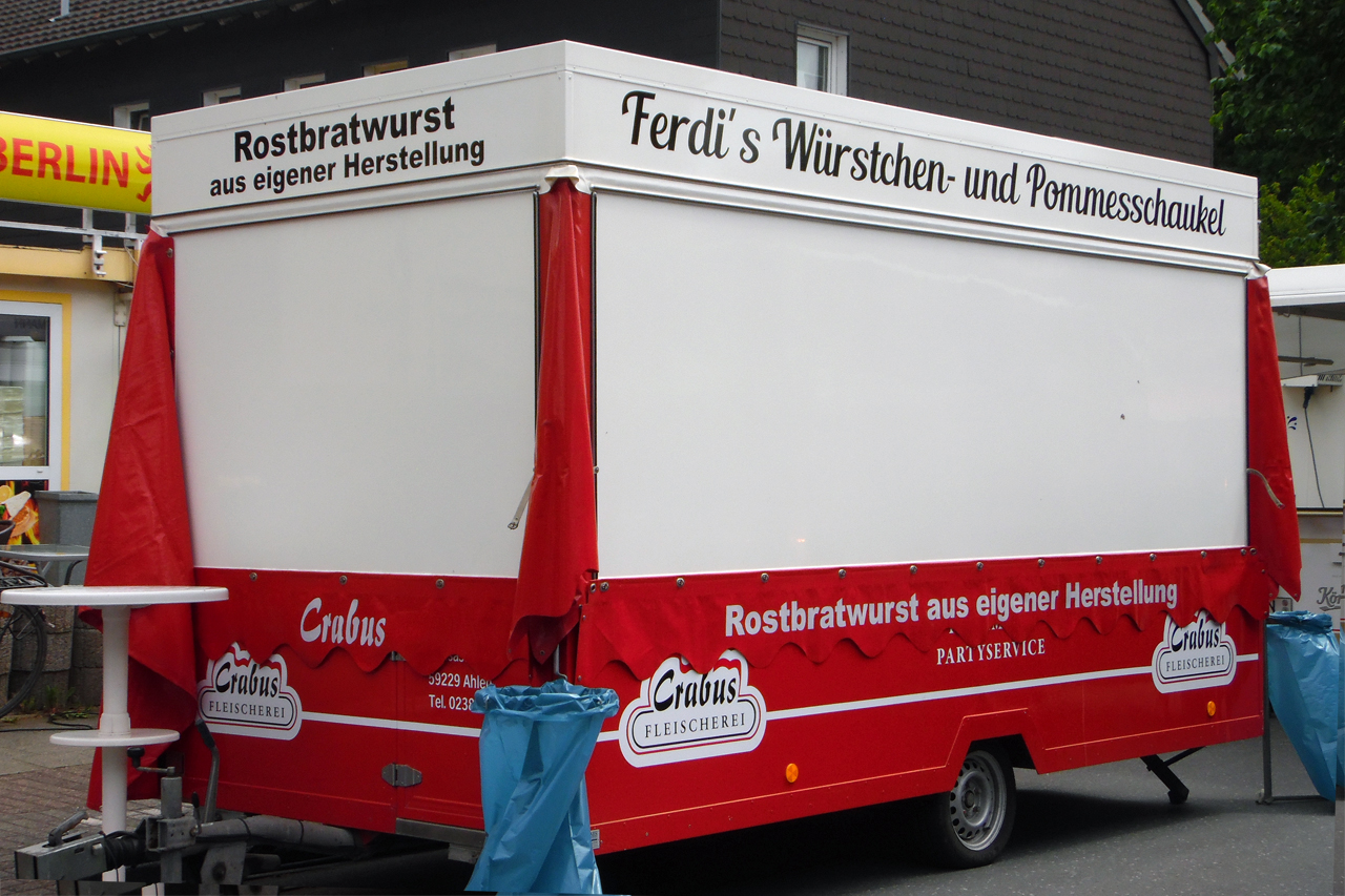 Stehtisch, Bierzeltgarnitur(Tisch und zwei Bänke), Gasgrill, Tischdecken,Imbisswagen (komplett eingerichtet) plus Endreinigung, Riesenpfanne.
